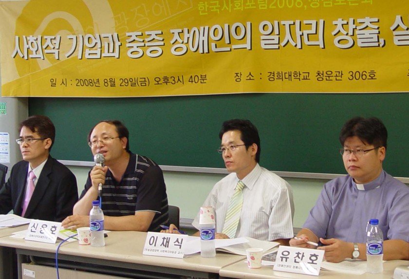 | ▲ 한국사회포럼 2008, 사회적 기업과 중증 장애인의 일자리 창출, 실험을 넘어 대안으로 쟁점 토론회가 지난 8월 29일 경희대학교 청운관 306호에서 개최됐다. ⓒ윤미선 기자 | ||