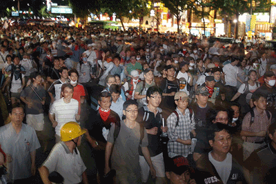 8월 16일 새벽 1시경 종로 2가에서는 경찰이 해산명령을 하는 중간에 갑자기 전경들이 달려들어 시민을 연행하려고 했다. 이때 인권침해 감시단이 항의하자 경찰은 “어제 저녁 7시에 소공동 로터리에서 해산 경고를 세 번 했다”는 비상식적인 답변을 했다. 현장에 있는 시민들이 명령을 들을 수 있도록 하는 것이 규정을 둔 목적일 텐데 경찰은 그 규정을 통해 보호하고자 하는 시민의 기본권에 대한 인식은 전혀 없는 것이다. 실제로 현장에서 해산명령은 검거의 개시 명령처럼 사용되고 있다. 시위대에 이미 경찰병력을 근접시켜놓은 후 “지금 바로 인도로 올라가지 않으면 물대포 쏘고 검거하겠다”고 말한 후 바로 검거가 시작된다.