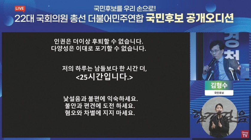 △ 지체장애인 후보자의 프레젠테이션 모습 ⓒ오마이TV