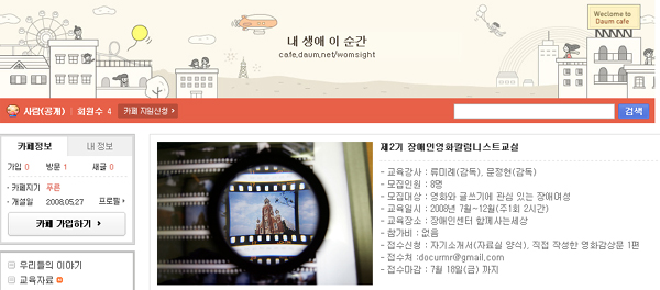 장애가 있는 여성이면 누구나 참가가능하며, 7월 중순부터 오는 12월까지 주 1회 2시간씩 장애인센터 함께 사는 세상, 광화문 미디액트 등에서 진행한다.
