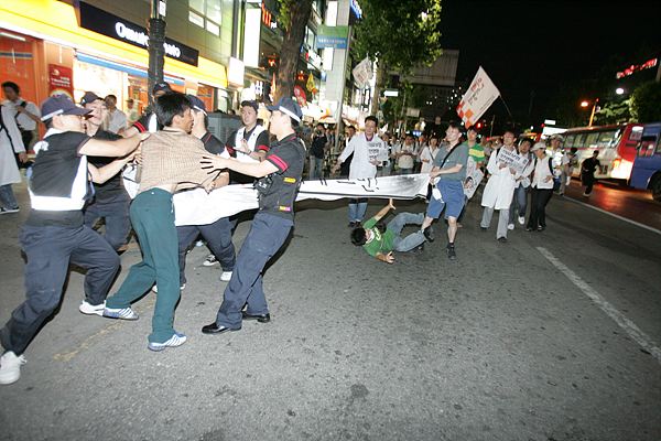 연행 직전 경찰 지휘부는 “손에 촛불 든 놈, 손에 뭐 든 놈, 깃발 든 놈 얼굴을 잘 봐두라”라고 전경들에게 명령하기도 했다.