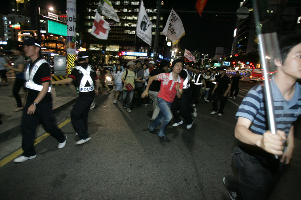 오늘 경찰의 촛불시민 강제연행은 5분 정도 도로 행진 후 인도 위까지 경찰에 밀려 해산 하겠다고 밝힌 시민들에게 막무가내로 이뤄진 것이라 어떤 방식의 행진도 허가하지 않겠다는 이명박 정부의 입장을 그대로 보여 준 것으로 논란이 될 것으로 보인다.