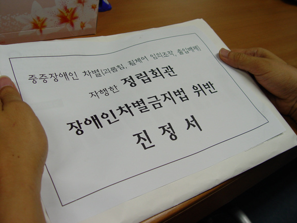 이날 인권위에 진정서를 제출한 사람은 총 9명으로 뇌병변장애와 지체장애를 가지고 있는 1급 중증장애인이다.