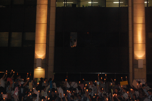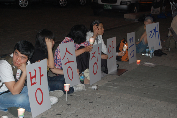 | 6월 11일 아고라 네티즌들이 KBS 표적 감사를 비판하며 공영방송 지키기 인간촛불띠잇기를 시작했다. | ||