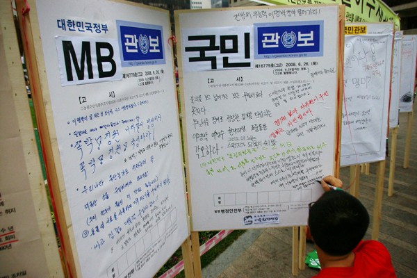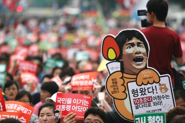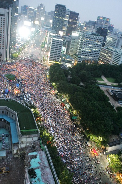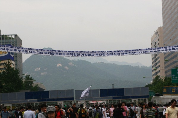또다른 시민은 "이명박은 이번 싸움이 보수와 진보의 싸움이라고 하는데, 그것은 진실이 아니다"라며 "우리의 싸움은 옳고 그름의 싸움이자 진실과 거짓의 싸움이다, 반드시 이 싸움에서 승리해 이명박을 몰아내야 한다"고 주장했다.