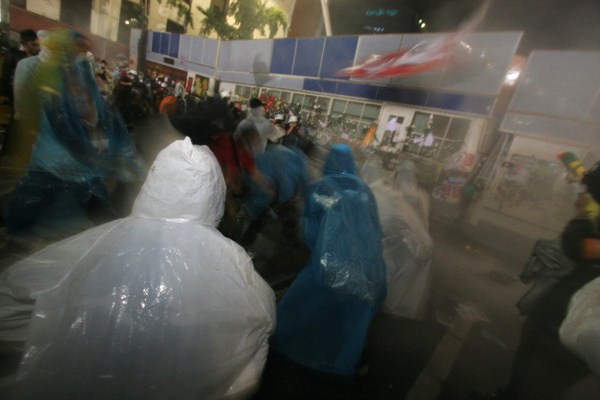현재 이곳에 남아 비를 맞으며 시위를 이어가고 있는 5천여 명의 시민들 외에 인도 위에 앉거나 누워 있는 곳곳의 시민들도 천여 명 가량 된다. 이 부근 건물 앞과 계단, 비를 피할 수 있는 모든 곳에 시민들이 가득 들어차 귀가하지 않고 집회를 지켜보고 있다. 시위대와 도로 위에서 방패를 들고 대치중인 전경들도 피곤한 기색이 역력해 선 채로 꾸벅꾸벅 졸기도 하는 모습이다.