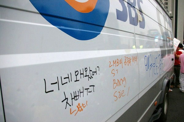 | 조선일보사가 있는 코리아나호텔에서 전진 배치된 차벽 | ||