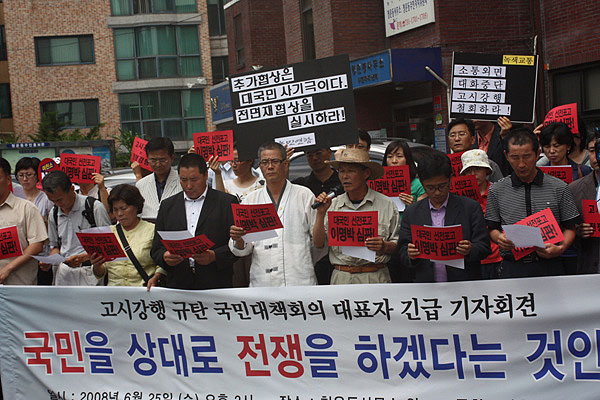 [1신 25일 14:40] 광우병대책회의 긴급기자회견, "오늘 꼭 청와대 간다"