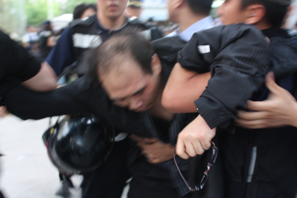| 무리한 연행으로 부상자도 속출했다. | ||