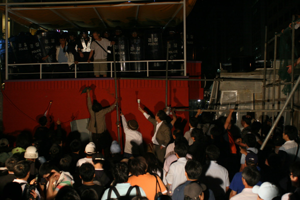 이런 와중에 '안티이명박' 깃발을 든 '이명박탄핵범국민운동본부' 회원 2백여 명은 "지하철을 이용해서라도 청와대 가까이 가자"며 저녁 8시 30분경 서대문 방향으로 나섰다.