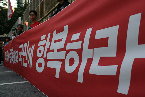 이곳에 모인 2천여 명의 시민들은 "국민의 뜻 무시하는 이명박은 물러나라", "국민이 반대하는 고시강행 규탄한다"는 등의 구호를 외치고 있다. 박원석 상황실장은 "1박 2일 동안 이명박 정부를 심판하는 끝장투쟁을 제안한다"며 "집회를 최대한 간결하게 진행한 후 이명박 정부를 향한 분노를 담아 실천투쟁을 전개하자"고 말했다.