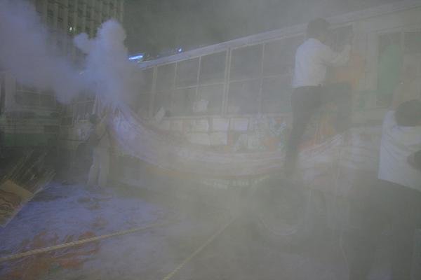 이와 더불어 오늘 경찰이 소화기를 뿌리는 방식은 전에 없던 모습으로, 전경버스 뒤쪽에서 하늘을 향해 분사되고 있다. 종전에 전경이 소화기를 들고 사람을 향해 직접 쏘는 방식이 아니라 훨씬 많은 분사량이 분수처럼 하늘을 향해 솟구쳐 뒤쪽까지 분말로 뒤덮어 버리는 모습이다.