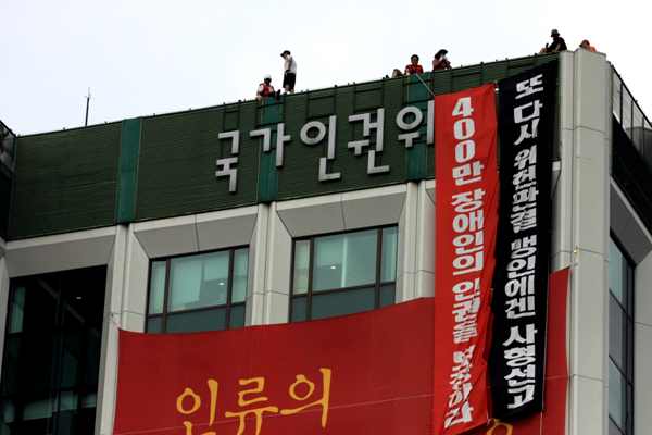 인권위 조형석 장애차별 팀장은 "계속 옥상에서 농성을 벌이고 있는데 어떻게 사무실로 돌아가 의견서 등을 검토할 수 있겠냐."라며 "생명이 위험한 방식의 투쟁은 잘못됐다. 무기한 농성을 벌여도 좋으니 안전한 7층으로 내려와 계속 주장했으면 좋겠다."고 밝혔다.
