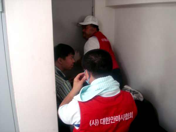 | 전시청련 소속 회원 23명은 시각장애인 안마사권 보장을 요구하며 인권위 옥상 점거농성을 벌이고 있다. ⓒ전진호 기자 | ||