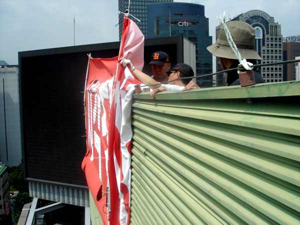인권위 측은 시너가 발열될 경우 화재의 위험이 있기 때문에 7층으로 내려와 계속 농성을 벌이기를 요청했으나 전시청련 측은 "그럴 생각이었으면 올라오지도 않았다."라며 문을 걸어 잠근 채 시위를 계속 진행하고 있다. 이들은 옥상에서 아래쪽으로 밧줄을 내리고 사람이 매달리는 고공시위를 진행했으며, 요구안 3개 조항이 받아들여질때까지 계속 투쟁을 이어가겠다고 밝혔다.