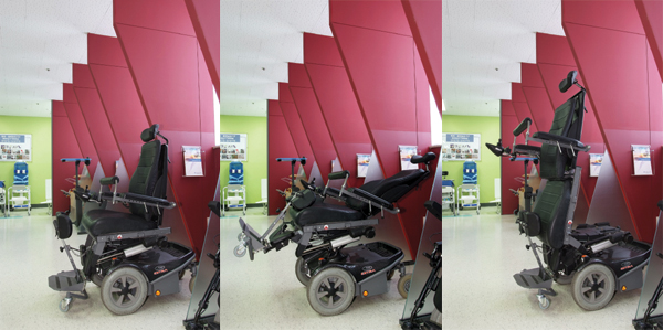 | ▲ 기립형 휠체어의 모습. 일반 휠체어 자세뿐만 아니라 침대형과 기립형으로 형태를 바꿀 수가 있다. ⓒ채지민 객원기자 | ||