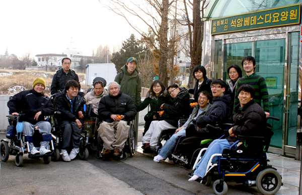 처음에 6개월 동안 폐결핵으로 개고기만 먹었더니 낫고. 나중엔 먹고 자고 먹고 자고, 2003년 시설장 수녀님들도 1년에 한 번 바뀌는데 그때 오셨던 수녀님이 인터넷 보고 뇌성마비 열두 명 모아놓고는 한뇌연(전 한국뇌성마비장애인연합, 현 한국뇌병변장애인인권협회)가입하라고 하더라고.