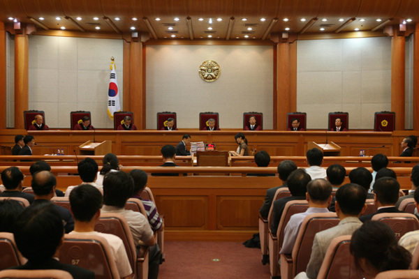| ▲ 의료법 제 61조 제 1항 중 「장애인복지법」에 따라 시각장애인에게만 안마사 자격을 부여하는 법 조항에 대한 위헌에 대한 공개변론이 지난 26일 헌법재판소 대심판정에서 개최됐다.(사진제공=헌법재판소) | ||