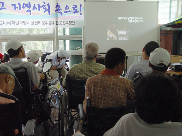 | ▲ 시설생활인들의 자립생활을 위한 교육과정인 ‘탈시설 학교’가 사회복지시설비리척결과탈시설권리쟁취를 위한 공동투쟁단 주최로 13일 노들장애인야학에서 개교식을 가졌다.ⓒ윤미선기자 | ||