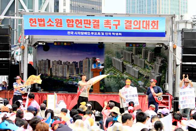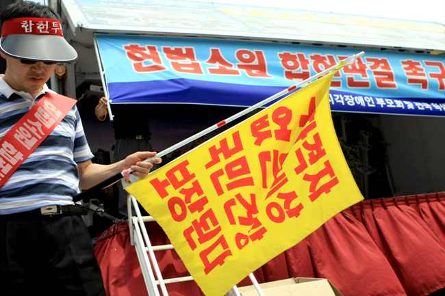 지난 12일 안마업을 두고 스포츠 마사지협회에서 제기한 위헌소송에 대한 헌법재판소의 공개변론을 두고 시각장애인 안마사들이 생존권 확보를 위한 투쟁에 나섰다.