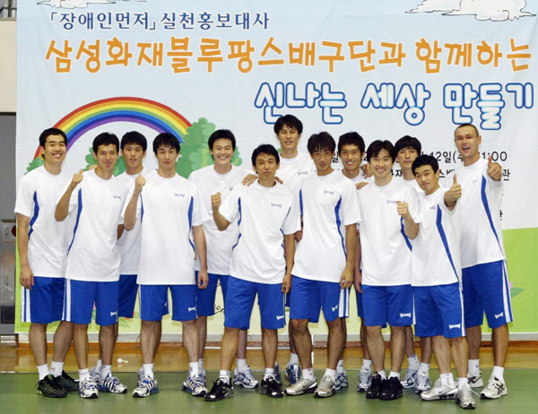 2002년 장애인먼저의 홍보대사로 위촉되어 활동하고 있는 삼성화재블루팡스배구단은 조별로 나누어져 치료교육과 체육교육에 일일교사로 나설 예정이다.