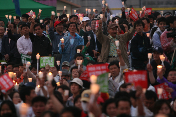 오늘 촛불문화제는 72시간 행동에 참여한 시민들의 함성으로 문을 열었다. 무대 위에 오른 한 남성은 "쇠고기를 미국에 갖다 바치고, 상수도 민영화, 의료민영화 등으로 모든 것을 재벌에게 갖다 주려고 하고 있다"며 이명박정부에 대한 분노를 표했다. 서울대병원 간호사라고 밝힌 한 여성은 "제주에서부터 다시 의료민영화를 시작하겠다고 한다. 이명박정부를 믿을 수 있겠냐"라고 하자 좌중에서 일제히 "아니오"라는 함성과 야유가 돌아왔다.