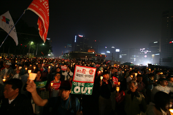방송차량에 오른 사회자는 “더 큰 촛불의 바다를 만들자”며, “앞으로 48시간 동안 더 큰 물결을 준비하자”고 호소했다.