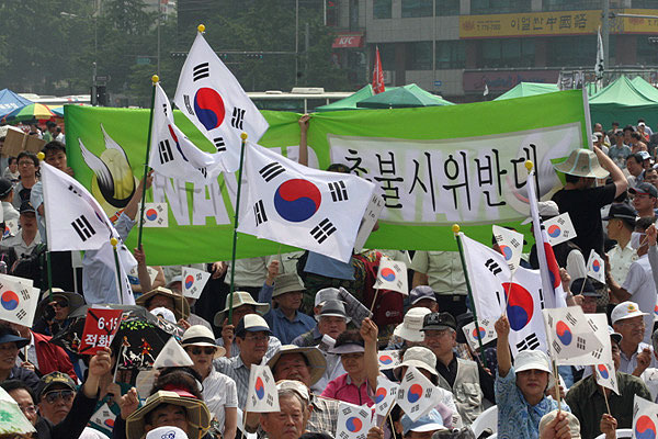 이 집회에 모인 3천여 명의 시민들은 주로 평균 60대의 노년층이며, 이들은 "촛불시위에는 배후가 있고, 그 배후는 좌익 좌파 반미세력"이라고 한 목소리를 냈다. 무대 전면에는 "쇠파이프를 든 촛불시위대를 보고 김정일이 웃고 있다", "불법시위 배후 척결하여 대한민국 지켜내자"라고 적힌 현수막이 걸려 있다.