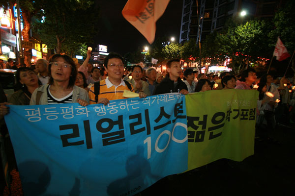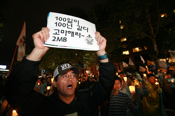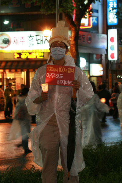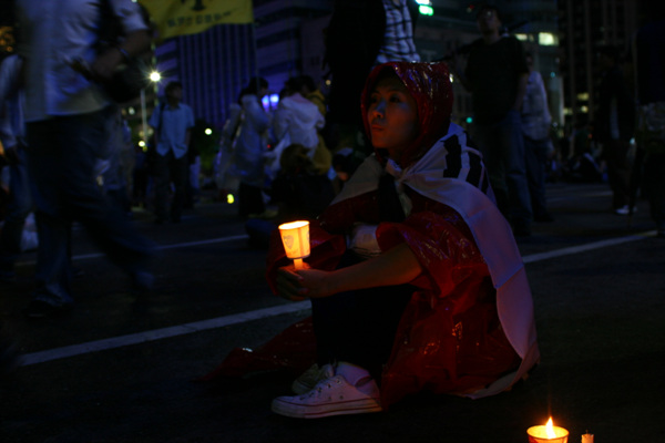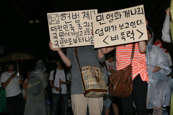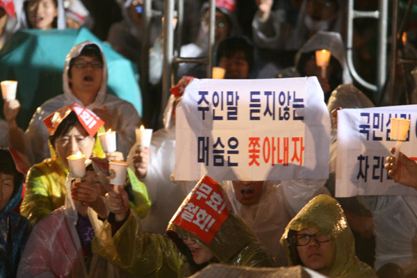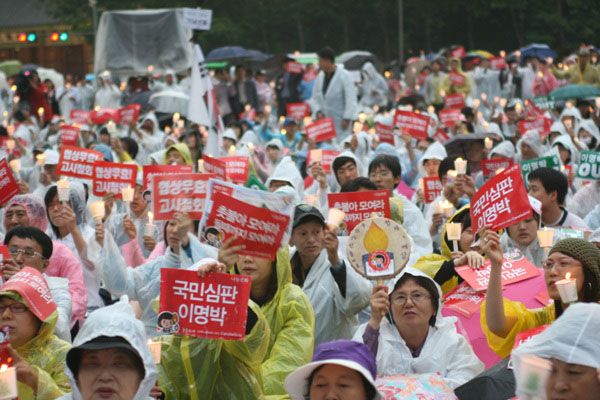 “박수 칠 때 이명박은 떠나라” [3일 20:33] 비가 오는 와중에도 어김없이 밝혀진 촛불
