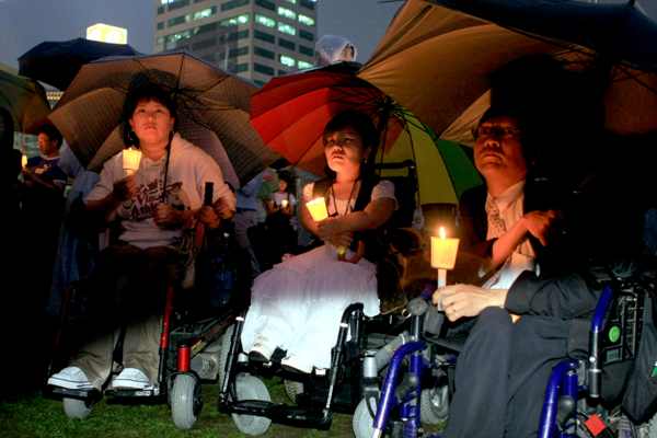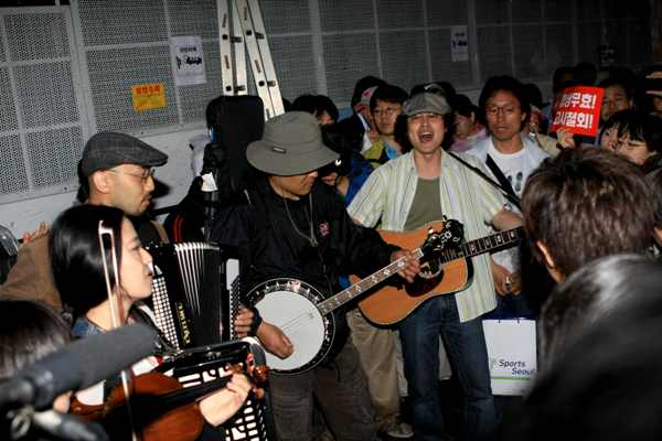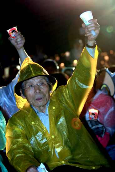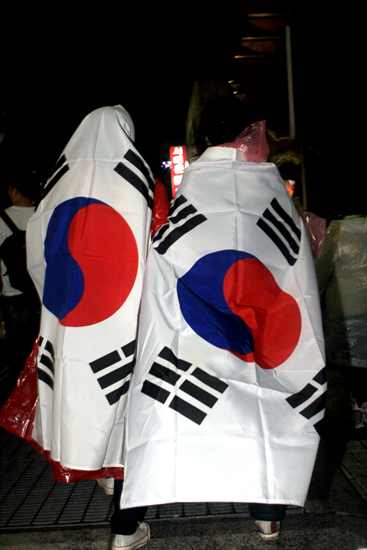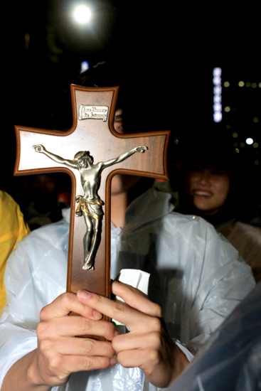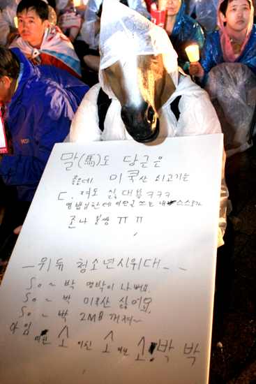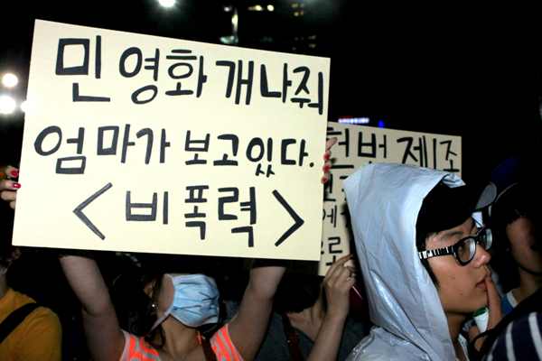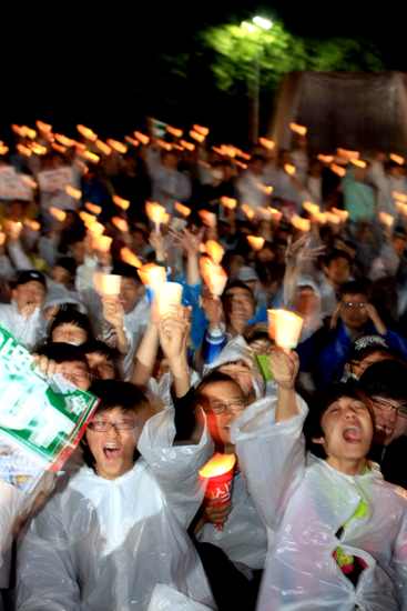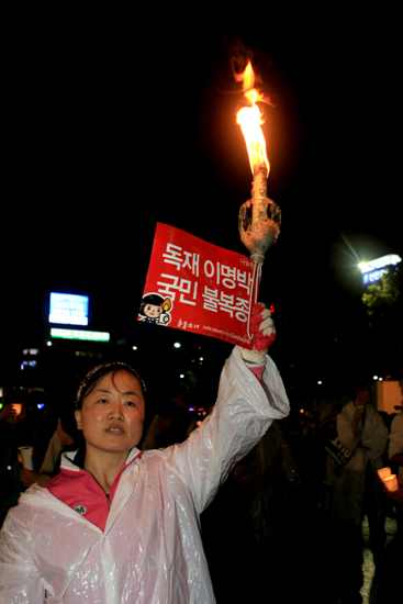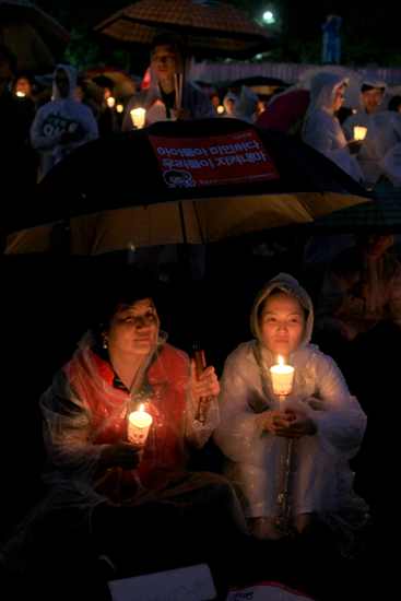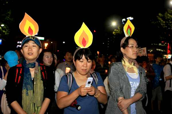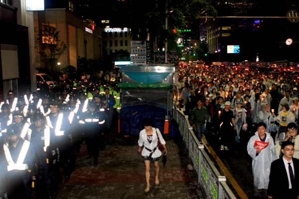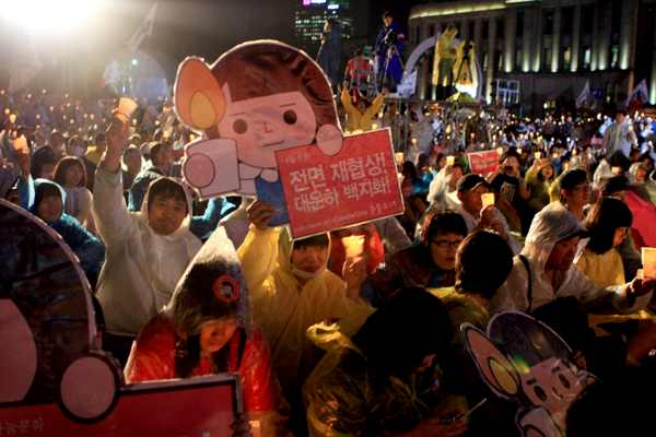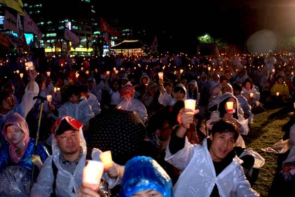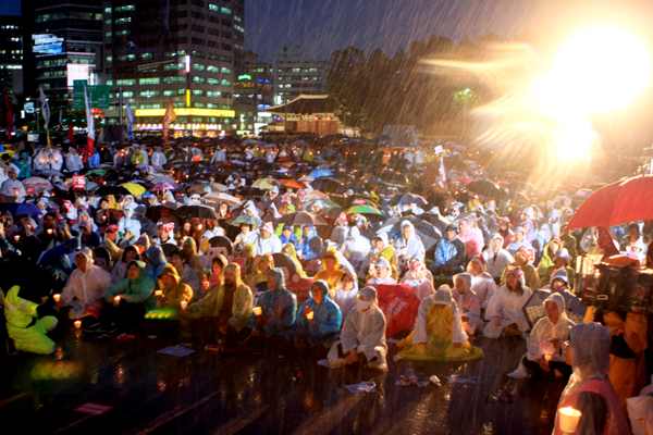 비가 오는 와중에도 어김없이 서울 시청 앞 광장의 촛불이 밝혀졌다.