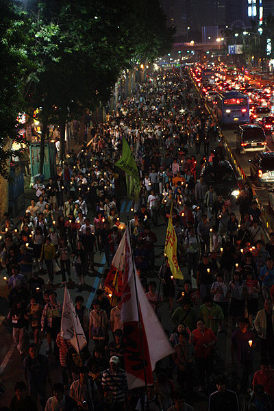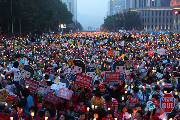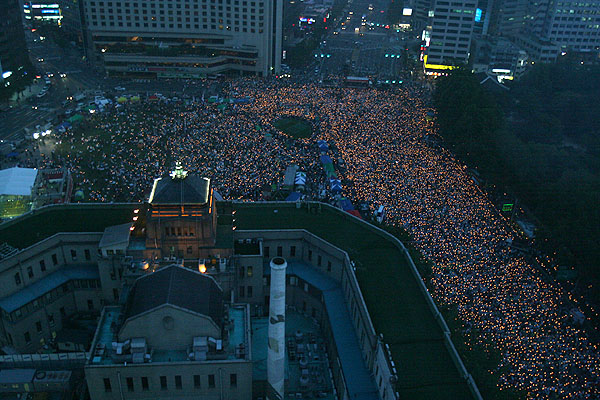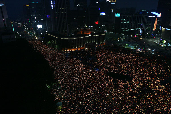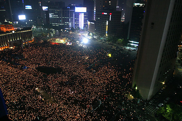 | 시청광장과 세종로를 가득 메운 촛불 | ||