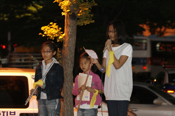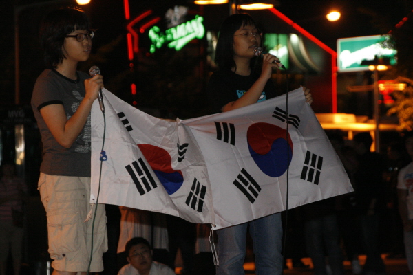 연단에 오른 여학생들은 교과서에 나와 있는 저항권과 민주주의를 언급하며 "이명박씨. 제발 미국민이 아닌 자국민을 위한 정치를 해달라"고 호소하기도 했다.