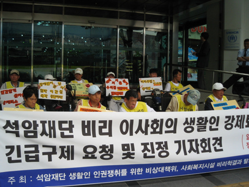 이날 기자회견에서 공투단은 “그동안 석암재단 이사장은 석암비대위 소속 회원들에게 수차례 비대위 활동을 중지, 탈퇴할 것을 강요했다. 또한 가족들에게 연락해 ‘말썽을 일으키고 있으니 가족들이 와서 데리고 가라’는 등의 퇴소를 강요해 왔다”고 폭로했다.