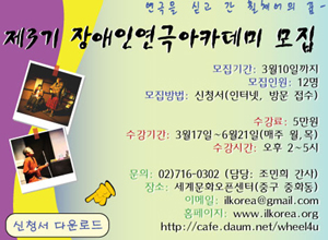 수강을 희망하는 사람들은 인터넷이나 방문 접수를 통해 신청서를 제출하면 되며, 자세한 사항은 중증장애인독립생활연대(www.ilkorea.org), 극단 휠 카페(cafe.daum.net/wheel4u)를 참고하면 된다. (문의 : 02-716-0302, 조민희 간사)