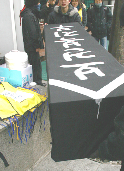 | ▲지난 1월 31일 열렸던 활보서비스 권리 쟁취를 위한 전국 총력 결의대회 때 등장했던 복지부 상여 ⓒ전진호 기자 | ||