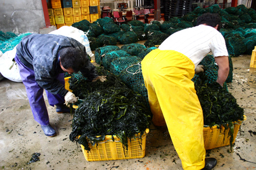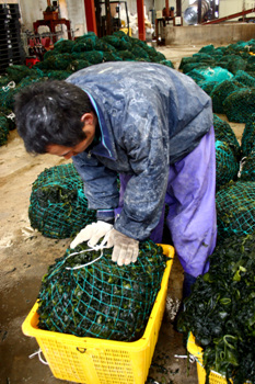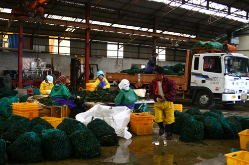 바다에서 건진 미역을 기계로 가지고 오면 몇몇의 아줌마들이 분류작업을 하는데, 이를 모아 차에다 싣는 일이 상민 씨와 영호 씨의 역할이다.