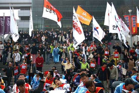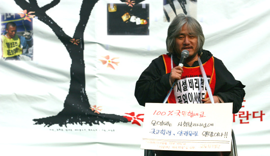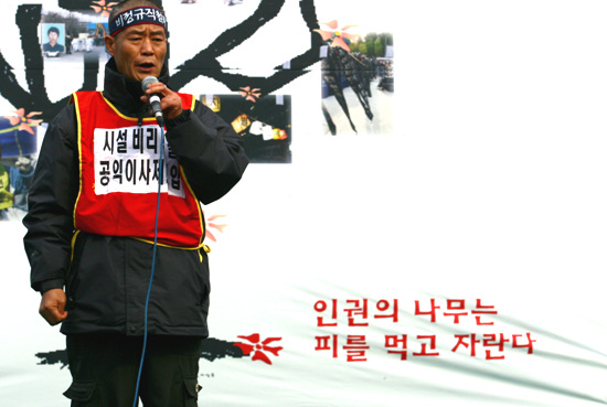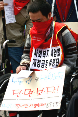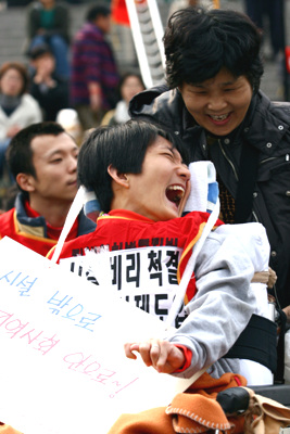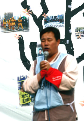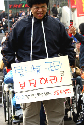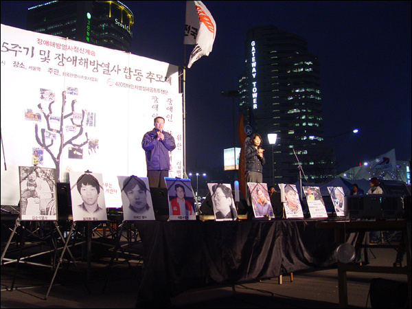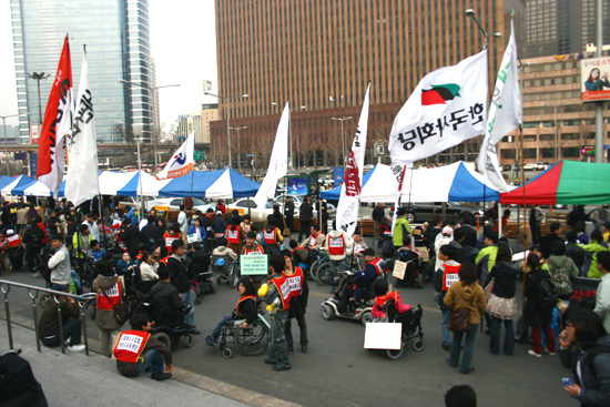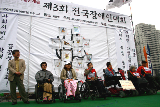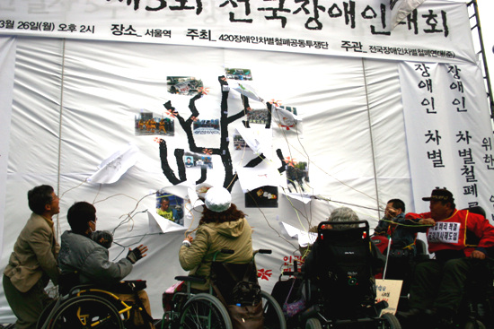 420공동투쟁단은 최옥란 열사 5주기인 26일 서울역 광장에서 제3회 전국 장애인 대회를 열고 천막농성에 돌입했다.