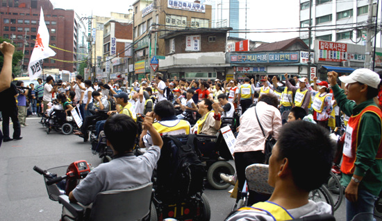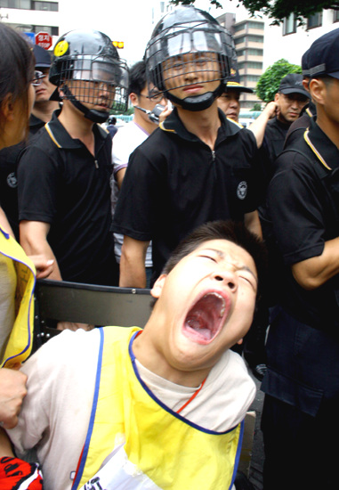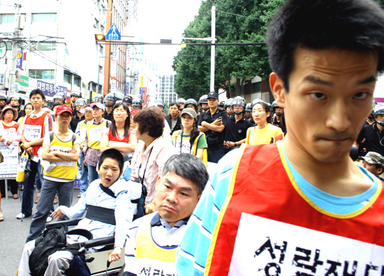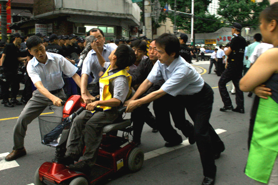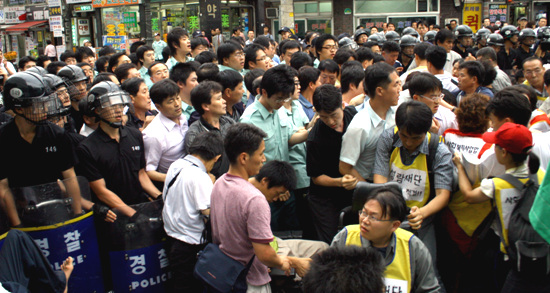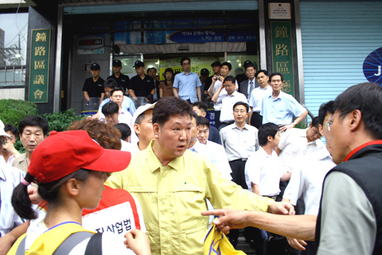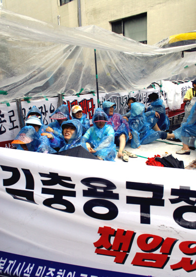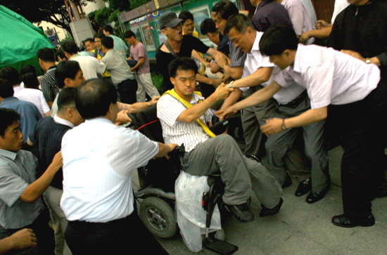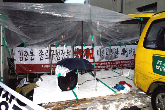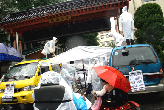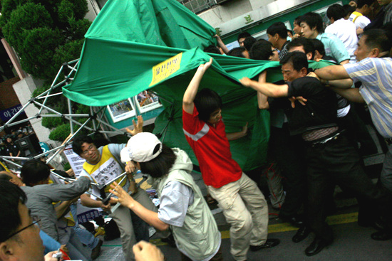 성람재단 공투단이 종로구청에 성람재단 비리 이사진 전원해임과 민주적 이사진 교체를 요구하며 무기한 천막농성에 돌입하자, 종로구청 직원과 경찰이 달라붙어 천막을 뜯어냈다.