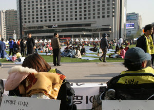 서울시 측은 “이번 진정사건의 경우에도 서울광장 안에서 100kg에 달하는 전동휠체어의 이동으로 잔디가 손상될 수 있으므로 잔디를 보호해 달라고 권유하는 과정에서 발생하였다”고 주장했다.