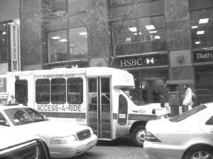 맨하탄에서 가장 먼저 눈에 띄었던 것은 버스. 버스는 뉴욕에서 가장 일반적인 대중교통 수단이다. 이는 장애우에게도 마찬가지. 버스가 장애우들의 발이 되고 있는 이유는 뉴욕의 모든 시내버스에 휠체어 리프트가 장착되어 있기 때문이다. 버스의 계단이 펴지면서 리프트가 되어 도로에 낮게 깔리면, 운전수가 시동을 끄고 버스에서 내려와 휠체어를 탄 장애우가 리프트에 탈 수 있도록 돕는다. 그리고 장애우가 버스 안의 휠체어 전용좌석에 오르면 운전수가 따라와 안전 벨트로 묶어주고, 그 뒤에야 출발한다. 모든 과정은 장애우의 안전을 고려해 천천히 이루어진다. 놀라운 것은 버스 안 승객 누구도 짜증 내거나 항의 하는 사람이 없다는 점. 뉴욕 취재에 동행했던 뉴욕 장애인선교회 배흥준 씨는 “휠체어 때문에 늦는다고 운전수에게 재촉을 하는 사람은 못봤다. 만약 그런 사람이 있다면 아마 여기서는 이상한 사람 취급을 받을 것이다.”라고 전했다.