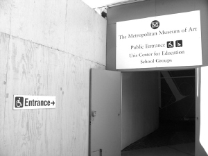 뉴욕 센트럴 파크 근처에 있는 세계적인 박물관 중의 하나인 메트로폴리탄 박물관의 웅장함도 빼놓을 수 없다. 미국 최대의 박물관이라는 메트로폴리탄 박물관은 영화에서나 본 듯한 높은 대리석 기둥과 계단들, 거기에 앉아 여유를 즐기는 시민들의 모습이 어우러져 퍽 인상적이었다. 그런데 장애우들은 이 세계적인 박물관에 정문을 통해서는 들어갈 수 없다. 1880년에 지어졌기 때문인지 어쨌든 장애우들은 건물 한 쪽 끝에 새로 만든 휠체어 전용 입구를 통해 입장하게끔 되어 있다. 메트로폴리탄 박물관은 장애우 방문자만을 위한 편의시설 안내지도가 구비되어 있고, 관람객 동선에는 거의 턱이 없으며 넓은 경사로와 엘리베이터가 잘 갖추어져 있었다. 구경하다보니 솔직히 그 많은 세계적인 보물을 어떻게 여기다 죄다 갖다놨는지하는 의구심도 들었다.