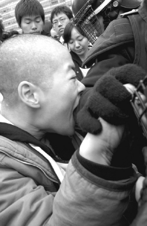 | ▲지난 4월17일 서울시청 앞에서 39명의 중증장애우가 삭발했다. 이들은 삭발된 머리를 서울시에 전달하고자 했으나 전경의 진압으로 뜻을 이루지 못했다. |