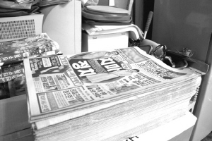 | ▲신문배급소 안에는 해당 신문은 별로 없고 생활용품과 주간지가 잔뜩 쌓여있었다. 그리고 출근현황이 적힌 서류도 있었다. |