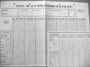 국가직 공무원 응시자에게만 지원되는 확대답안지