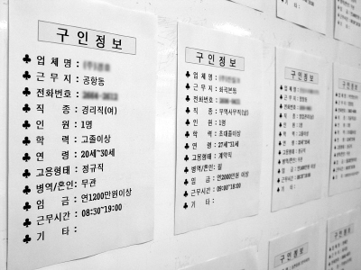 ▲강서구청의 구인정보 게시판. 구직자는 40대가 많지만 구인정보는 모두 30세 안팎의 젊은 사람