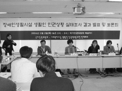 지난 2월 2일, 국가인권위원회에서는 ‘장애인생활시설 생활인 인권상황 실태조사 결과 발표 및 토론회’가 열렸다. 작년 8월부터 11월까지 진행된 실태조사는 전국 22개의 양성화된 장애우 시설을 대상으로, 그 안에서 생활하고 있던 744명 가운데 총 235명의 생활인과의 1:1 면접조사로 이루어졌다.