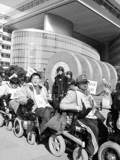 지난11월22일 장애인차별금지법제정을 위한 전동거리대행진 장면