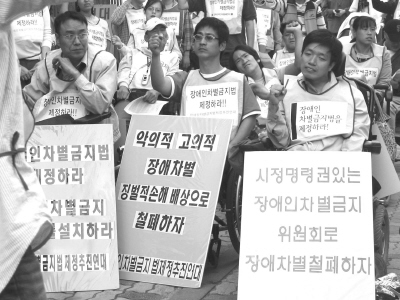 우선 장차법 제정이 위기를 맞기 시작한 것은 지난 2004년 12월 정부가 차별시정기구를 일원화하겠다는 방침을 정하면서부터다.
