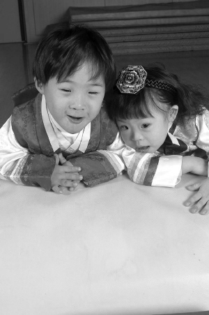 곱게 차려입은 한복이 불편하기도 하련만, 둘은 아랑곳 하지 않고 강당을 뛰어다니며 노는데 여념이 없다. 작지만 가지런히 꼭 쥔 통통한 손이며, 꼭 다문 입술이 어딜 봐도 정말 속이 꽉 찬 사랑스런 아이들이다.