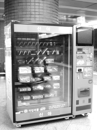 현재 지하철 1~4호선에는 과자회사인 롯데의 껌, 초코렛, 과자 및 사탕 등을 파는 자판기가 새로 설치, 가동 중이다. 올 8월말부터 판매를 시작한 이 과자 자판기는 ‘신우‘라는 회사가 서울지하철공사로부터 운영권을 따내 지하철 1~4호선, 110개 역 승강장에 184대를 설치했다.
